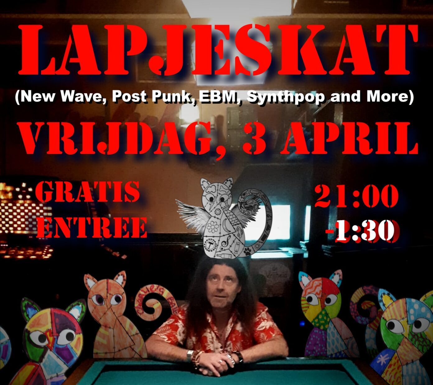 Obscure, onbekendere plaatjes afgewisseld met wat underground hitjes en natuurlijk jouw unieke verzoekjes! Bij Lapjeskat ligt de nadruk op de wat minder vanzelfsprekende plaatjes, van new wave tot punk, van ebm tot artrock, postpunk, electroclash, synthpop en alles ertussenin en eromheen. Geen evergreen klassiekers new wave hitjesparade party… Dit is Lapjeskat!